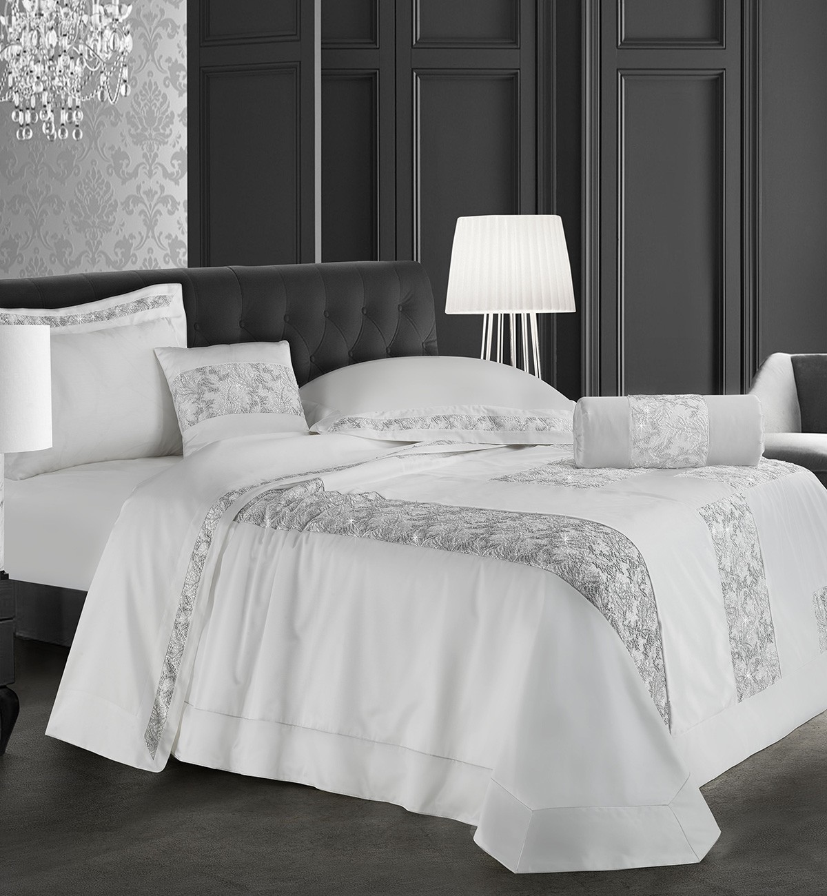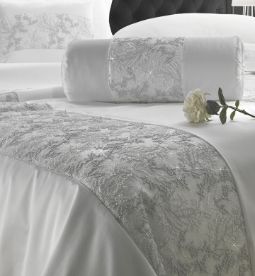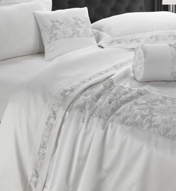 Copriletto Begonia - Rasone avorio con pizzo Grigio / Avorio