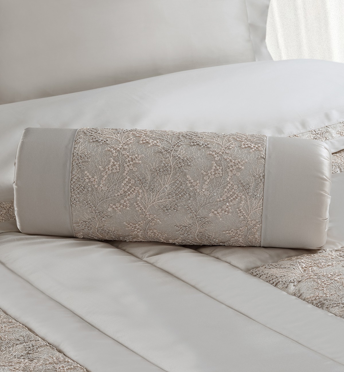 Cuscino Arredo Begonia - Rollò - Rasone tortora con pizzo Crema / Ecrù