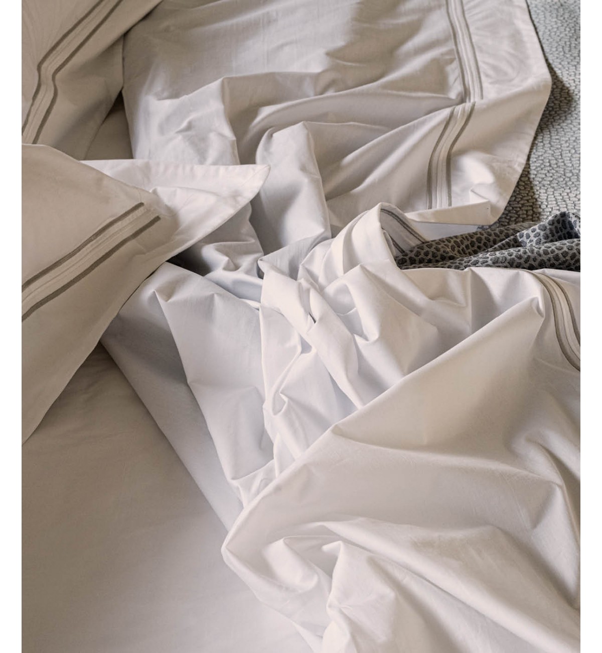 Completo lenzuola Ibisco - Fondo bianco, ricamo grigio perla - bianco
