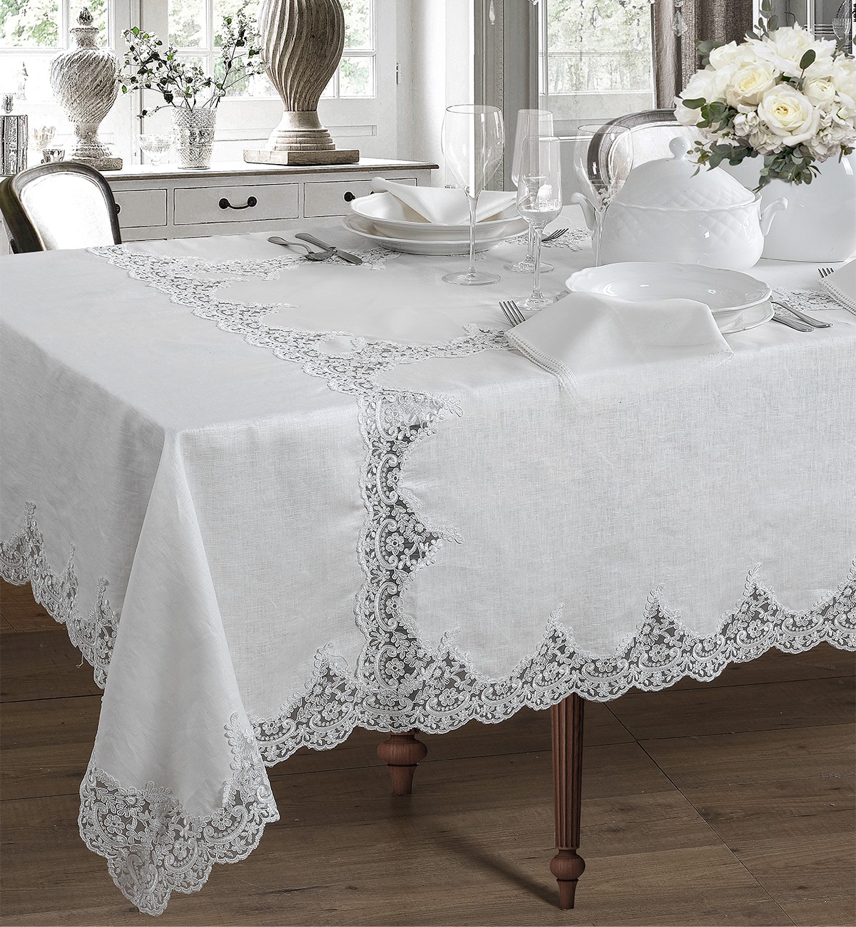 Tovaglia Matilde - Lino avorio con pizzo avorio
